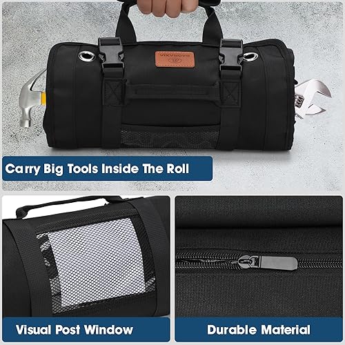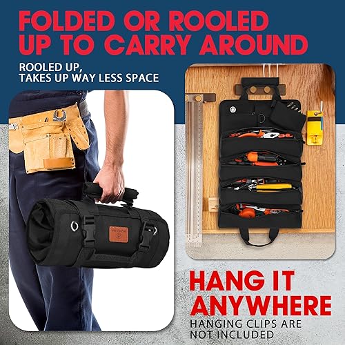 BAQRAXIA Werkzeugtasche, aufrollbare kleine Werkzeugbox, robuster Werkzeug-Organizer mit 2 abnehmbaren Werkzeugtaschen, Werkzeuggeschenke für Männer, Vater, Ehemann, Freund, Opa, Geschenke zum