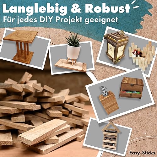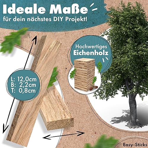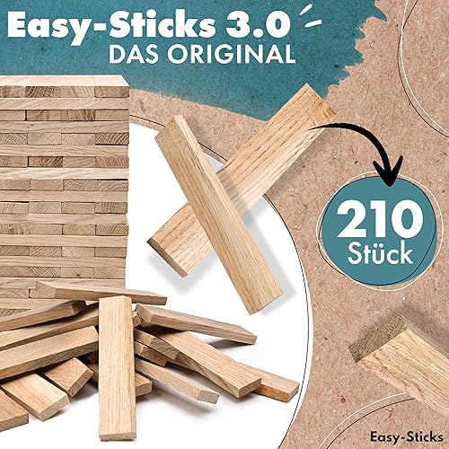 Easy-Sticks 3.0 Eiche – 210 Stück – Bastelholz OHNE Klebeband – Hölzchen für DIY Projekte und Deko – Hölzer zum Bauen und Verkleiden