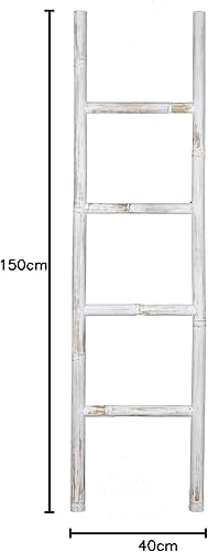 Spetebo Bambus Dekoleiter weiß - 150x40cm - Shabby Chic Leiter Holzleiter Wanddekoration