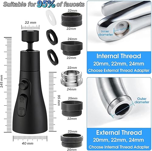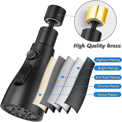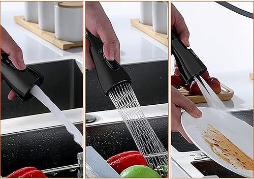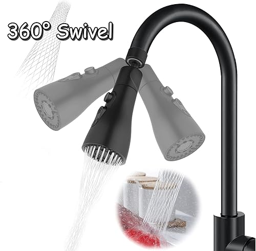 Schwenkbar Wasserhahn Aufsatz Schwarz, 360° Drehbarer mit 3 Modi Multifunktionaler Wasserhahn Luftsprudler, Wasserhahn Verlängerung mit 2 Sprühfunktion, Wassersparer für Wasserhahn Brause Küche Bad