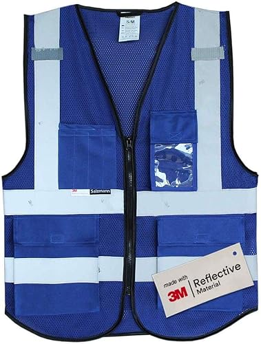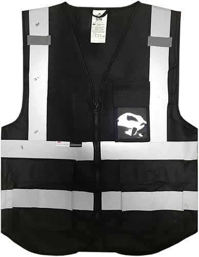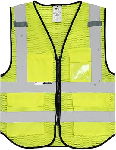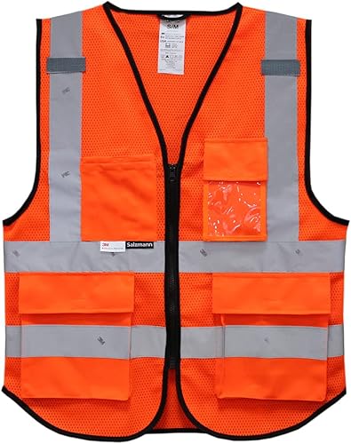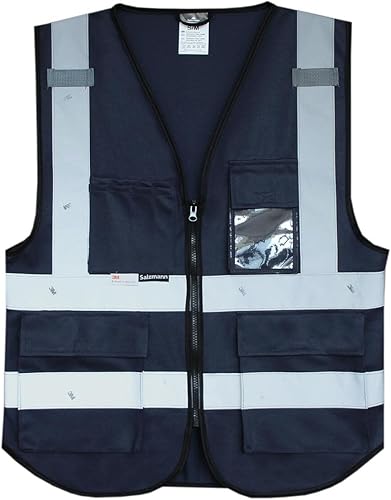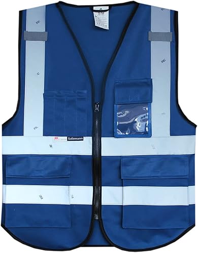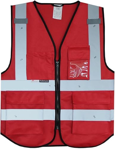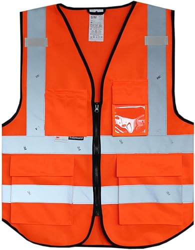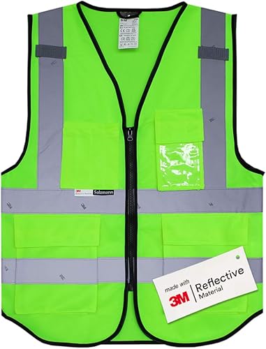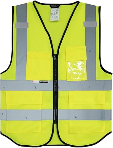 Salzmann Warnweste - Hergestellt mit 3M Reflektierendem Material - Mit 4 Vordertaschen und Reißverschluss