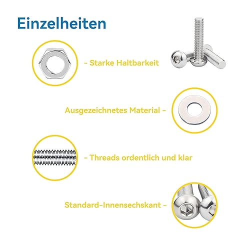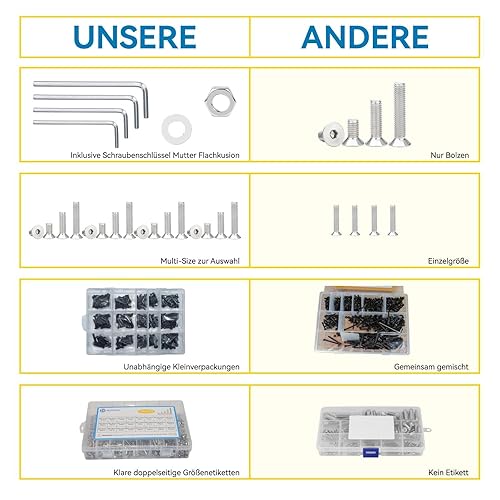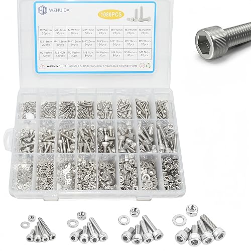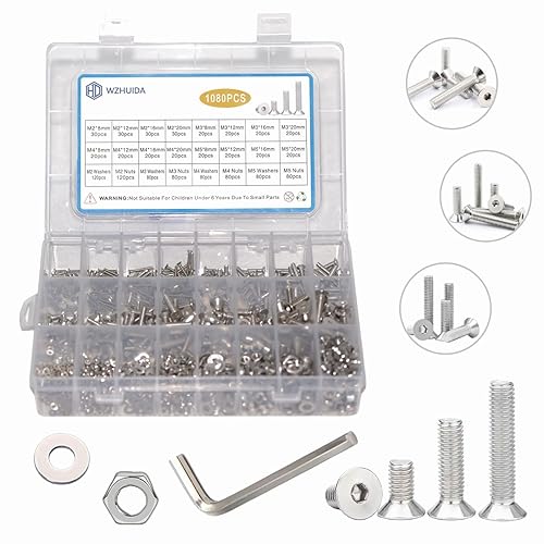 WZHUIDA 1080 Stück M2 M3 M4 M5 Schrauben Muttern und Unterlegscheiben Sortiment Set, Edelstahl Senkkopfschrauben mit Innensechskant Schrauben Muttern Set mit 4 Schraubenschlüsseln