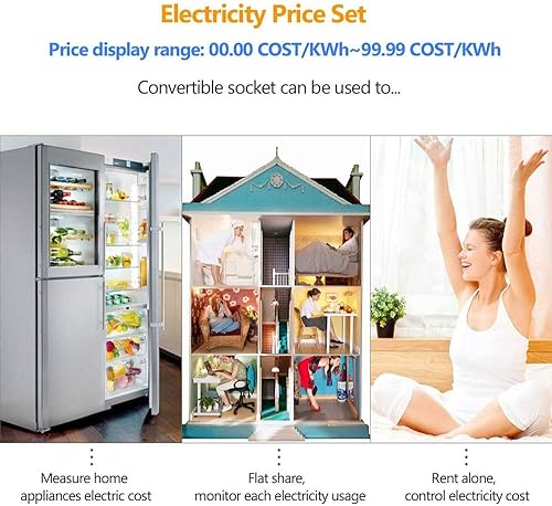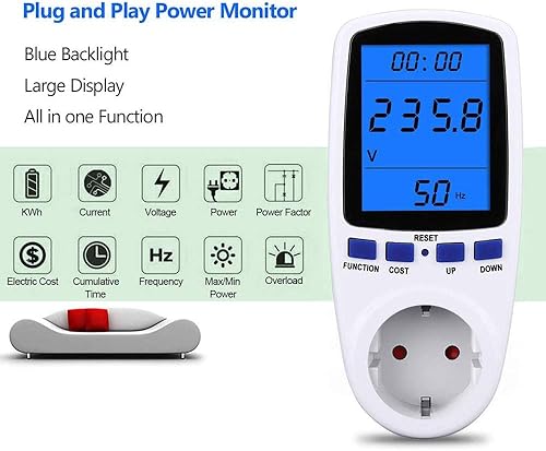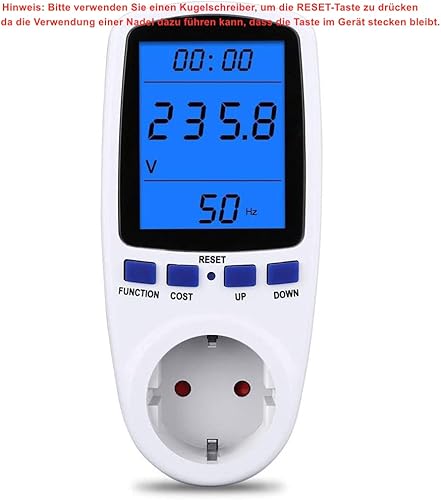 Stromverbrauchsmesser Strommessgerät Steckdose Stromzähler, Energiekostenmessgerät Stromkostenmessgerät Stromverbrauchszähler Messgerät Leistungsmesser, LCD-Hintergrundbeleuchtung 180 °-Lesbar Dispaly