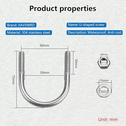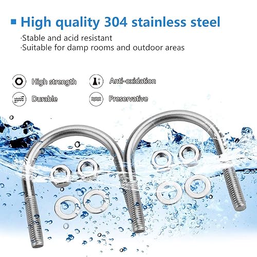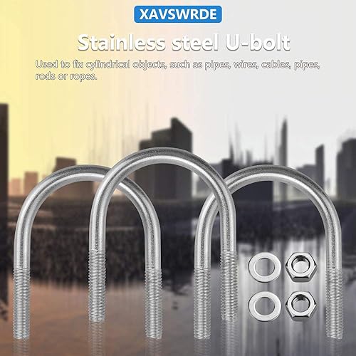 XAVSWRDE 5 Stücke U Bolzen M8 Rund Edelstahl U Schrauben Bügel mit Gewinde,Bügelschraube U Bügelbolzen mit 10 Unterlegscheibe und 10 Mutter für Durchmesser 50mm Rohr(Silber)