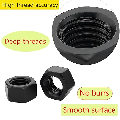 Qrity 20 Stück Sechskantmuttern M10, Schwarze Hexmuttern, Sicherheitsmuttern, Sechskantmuttern Aus Stahl, Schraubenmutter, Muttern für Wohngebäude, Industriegebäude, Reparaturen