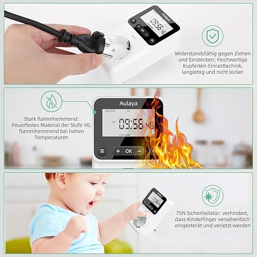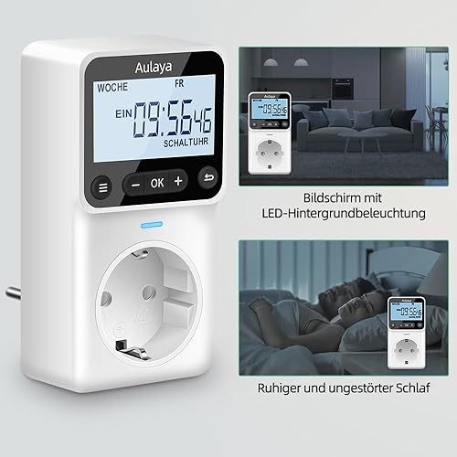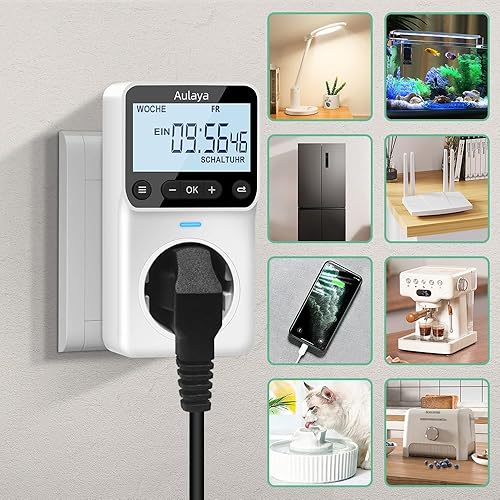 Zeitschaltuhr Digital Deutsche Ausführung Steckdose mit 25 konfigurierbaren Wochen- Tages- und Minuten Programmen, Neu aufgerüsteter Groß LCD Display Digitale Elektrische Zeitschaltuhr 3680W-1 Pack