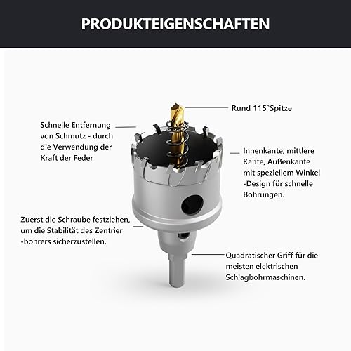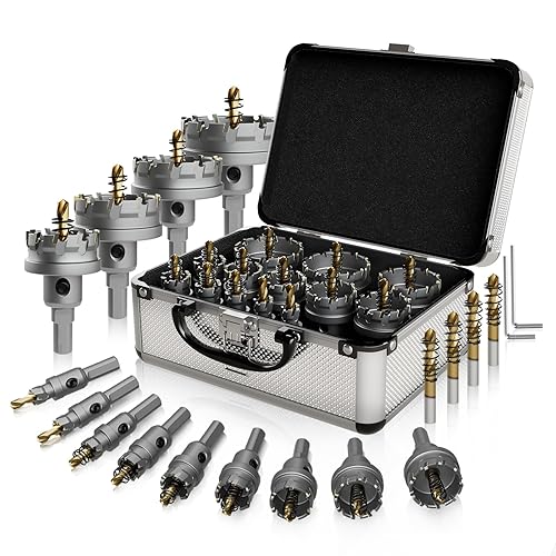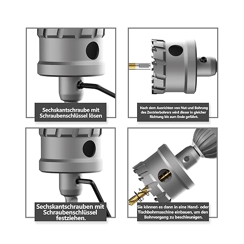 CSOOM Upgrade Hochleistungs-Hartmetall-Lochsäge 14 stück,TCT Lochschneider, mit 2 * Extra Titan-beschichtete Pilot-Center-Bohrer und 2 * L-Schlüssel.Edelstahl und Metallgitter sind die ideale Wahl