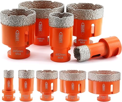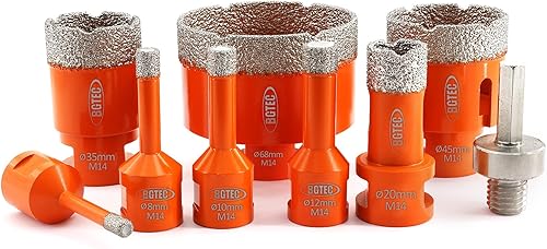 BGTEC Diamantbohrer Fliesenbohrer Set,6/8/10/12/20/35/45/68mm Diamantbohrkronen für Porzellan, Fliesen, Granit, Marmo ein Adapter