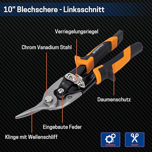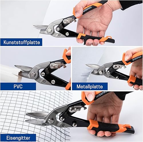 WISEPRO 10'/ 12' Blechschere (Gerade/Links/Rechts), Metallschneider mit Verbundwirkung, Robuste Blechschere(12'S)