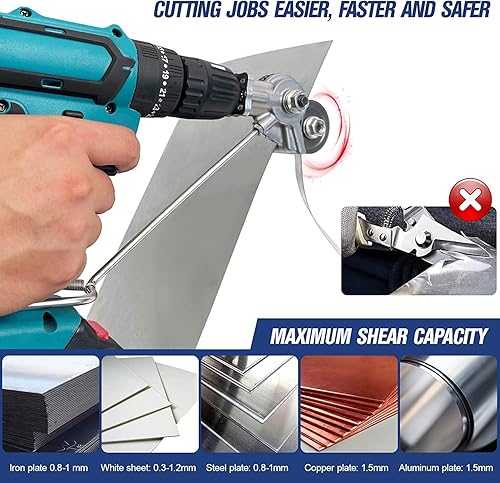 Blechschere Elektrisch mit Koffer, blechschere für akkuschrauber, Blechschneider von Handbohrmaschine, Metal nibbler drill attachment zum Schneiden von Eisen, Weißblech, Stahl, Kupfer (Universal)