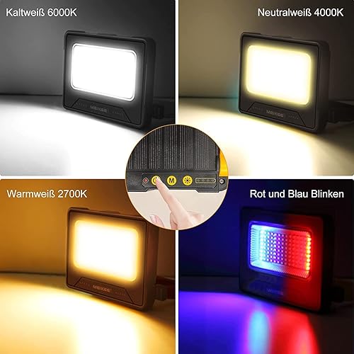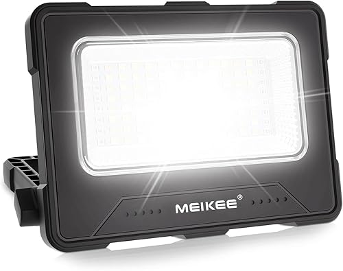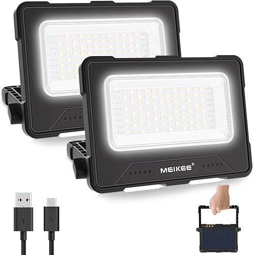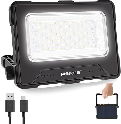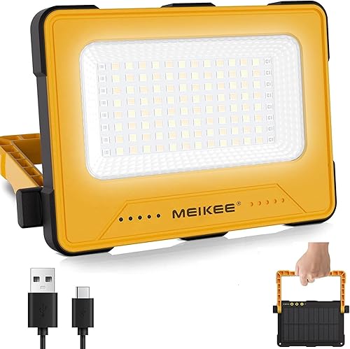 MEIKEE 80W LED Baustrahler 12000MAH Led Arbeitsleuchte Akku Strahler 4 Lichtmodi Campinglampe Tragbar 5 Helligkeiten Solar USB-Aufladung Akku Lampe für Camping, Garage, Bau, Reparatur, Notfall
