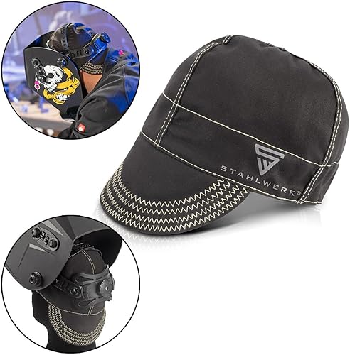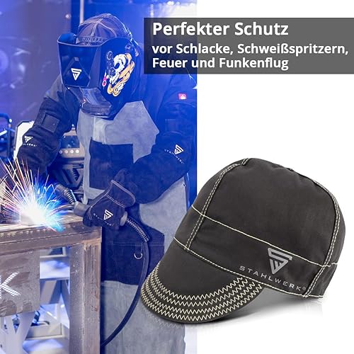 STAHLWERK Schweißkappe | Schweißermütze | Schweißhelm | Schweißhaube | Schweißermaske | flammenhemmende Schweißerschutzkleidung zum Schweißen und Plasmaschneiden
