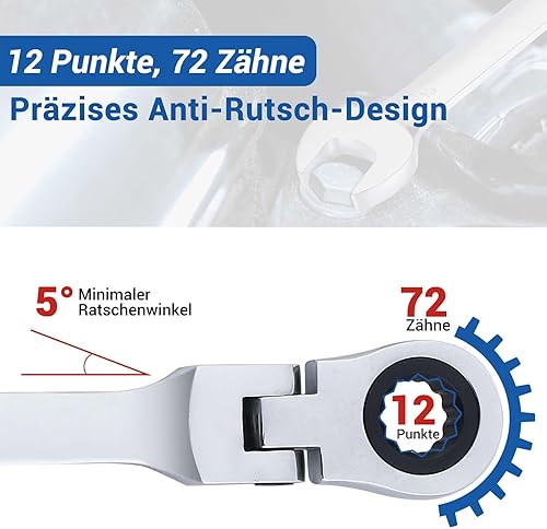 Gedlex Ratschenschlüssel 13 mm, Flexibel Ringschlüssel Ratsche und Maulschlüssel, Metrischer Schraubenschlüssel, Chrom-Vanadium-Stahl Schlüssel, Abriebfest, Rutschfest, Antifouling