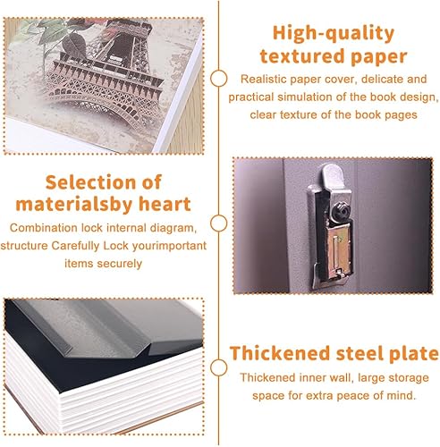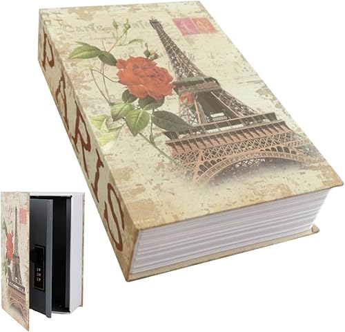 DAJASD Buchsafe mit Zahlenschloss, 24 x 15,5 x 5,5cm Buchsafe Tresor, Buchtresor für Geld Schmuck Wertvolle Objekte Büro/Hause - Rosentagebuch Stil