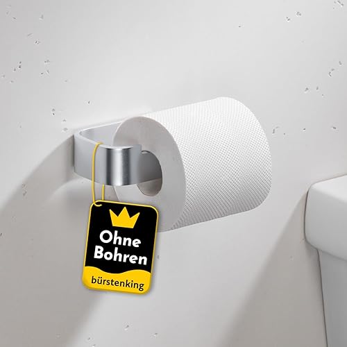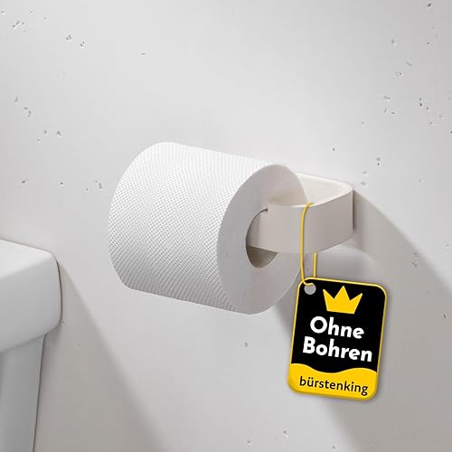 Bürstenking Toilettenpapierhalter ohne Bohren – moderner Klopapierhalter zum Kleben – Selbstklebende Toilettenpapierhalter – WC Rollenhalter mit 3M Kleber – Matt Cremeweiß – Rechts