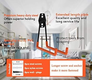 Garage Haken,10 Stück Garage Storage Utility Doppelhaken, Multi-size Heavy Duty Eisen Wandhalterung Werkzeughalter für Home Chair Ladder, Organisation von Elektrowerkzeugen