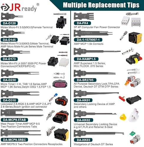 JRready ST5278 Ersatzspitzen für Stiftentfernungswerkzeug, 26 Stück, Stiftausdreher-Werkzeugspitzen, elektrisches Terminal-Entriegelungswerkzeug, kompatibel mit Deutsch AMP/TE Molex Delphi JST