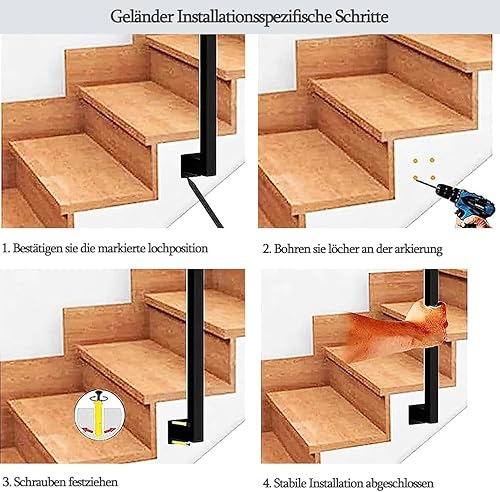Treppengeländer Innen, Geländer treppe, Handlauf treppe, U Förmiger Geländer, Treppengeländer Außen, Handlauf Schwarz, TreppengeläNder, für Balkone Flure Wohnungen Villen (U-Schwarz, 95CM)