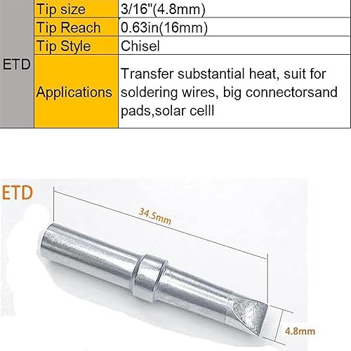 Schweißlötspitzen für ET Lötkolben, ETS ETA ETB ETT ETD Ersatz für Weller WES51 WESD51 WE1010NA PES51 Lötkolben Griff Spitze Schweißstift Düse Lötkolben Set (5PCS Spitzenset)
