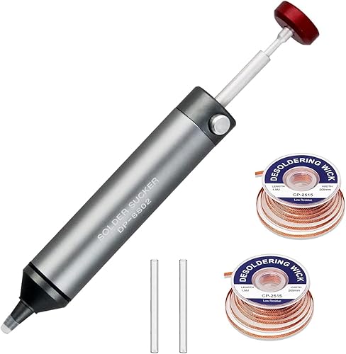 FrogBro Entlötpumpe, Nicht verstopfende Solder Sucker, 2 Silikondüsen, 2 Entlötlitze, Hitzebeständig, 0,04 MPa Superabsaugung