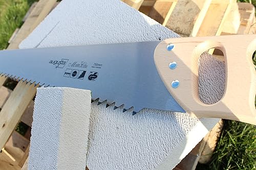 Augusta-Heckenrose Porenbetonsäge 750mm I Handsäge aus Bandstahl C75 mit stabilem Holzgriff I Robuste Bausäge mit grober Schubzahnung für Porenbetonsteine u.a.