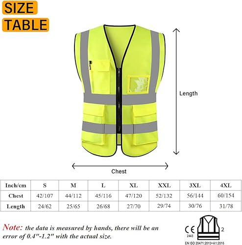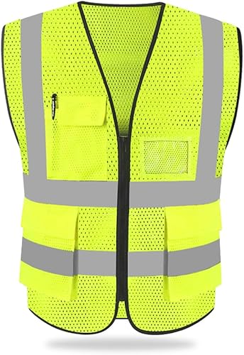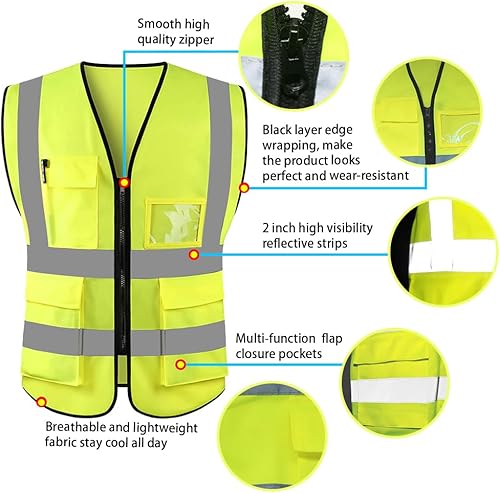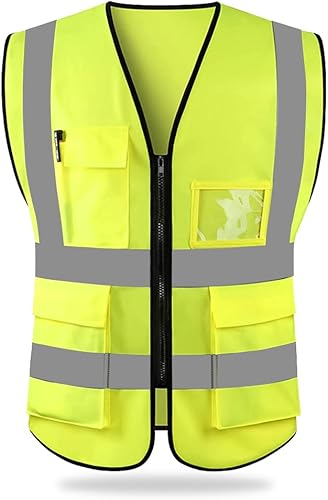 HYCOPROT Sicherheitswesten Warnweste Hohe Sichtbarkeit Reflektierendes Weste Executive Manager Jacke Zip 2 Band Brace
