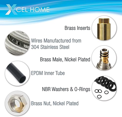 Xcel Home Schlauch für Waschtischgarnitur/Küche, lang, flexible Rohre, M10 x 1/2 BSP-Gewinde, 400 mm, 2 Stück
