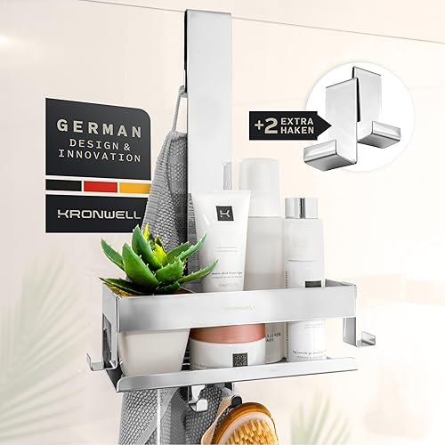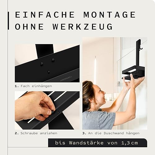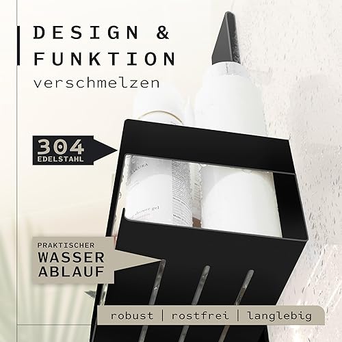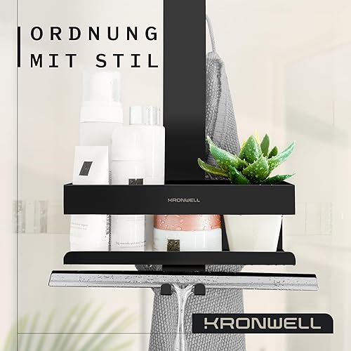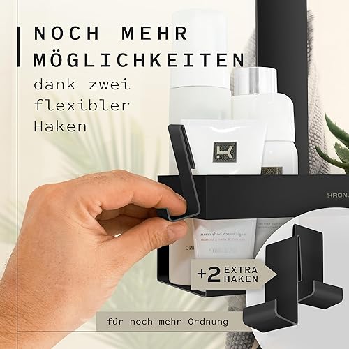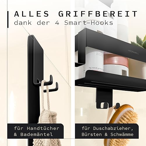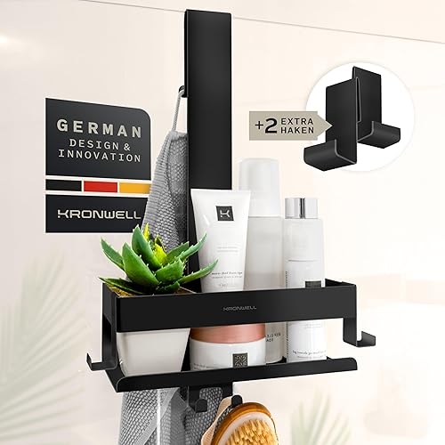 KRONWELL® Duschablage zum Hängen - rostfrei + 2 zusätzliche Haken - Duschregal zum Hängen - Duschkorb hängend Edelstahl - Shampoo Halterung für Dusche - Schwarz Matt