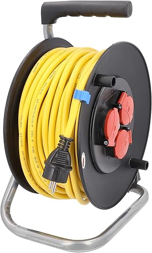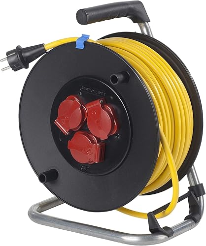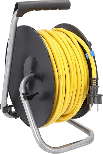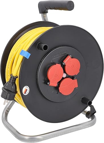 as - Schwabe Profi-Kabeltrommel – 33 m Panzerkabel-Leitung 230 V / 16 A –Trommel mit 3 Schutzkontakt-Steckdosen inkl. Schutzklappe & Thermoschutzschalter– IP44 – Made in Germany – Schwarz, 10139