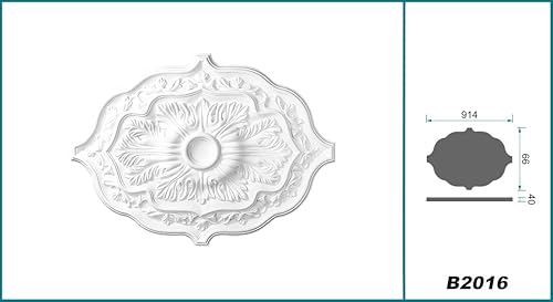 HEXIM Perfect Stuckrosette B2016, 914x660mm - Deckenrosette weiß, aus PU/Polyurethane, Zierelement, Stuck, Wanddeko Wohnzimmer Lampe Oval