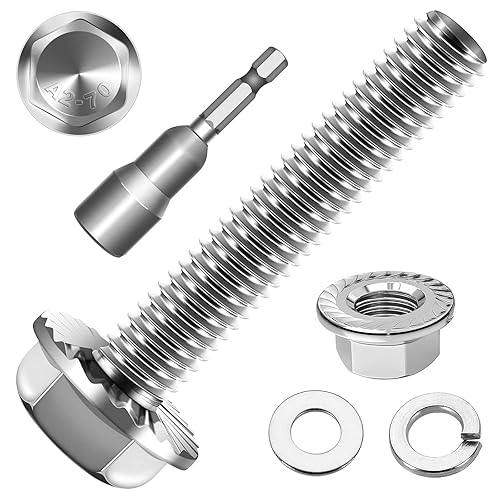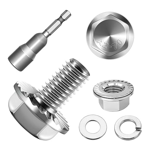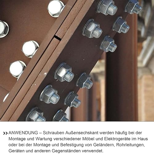 10 Stück M10x25 Sechskantschrauben, Flansch Schrauben, Edelstahl A2 V2A, Außensechskan, Vollgewinde, Unterlegscheiben, Federringe & Muttern/Schrauben-Sortiment mit Magnetischem Sechskant-Bit