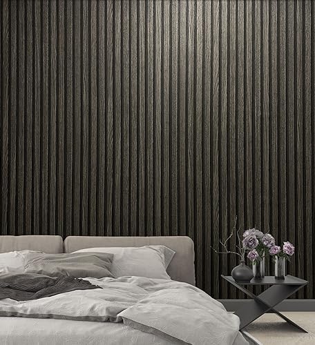 marburg Tapete Holzoptik Schwarz Akkustikpaneele 3D Effekt Vliestapete Wohnzimmer Schlafzimmer 10,05 x 0,53m Made in Germany