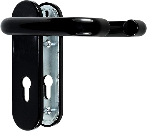 SN-TEC Stahltür FH Tür Beschlag für Feuerschutztüren, mit beidseitig Drücker, abgerundetes Schild, Kunststoff schwarz nach DIN 18273 FS