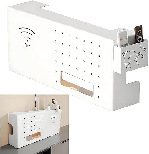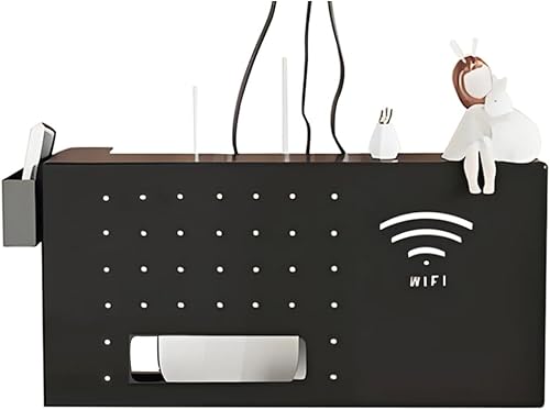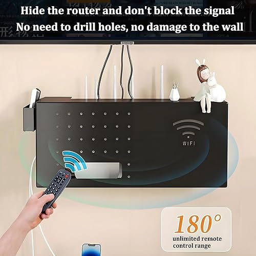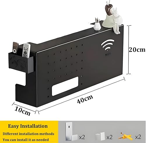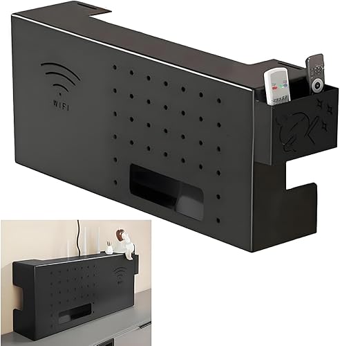 PUIOTEAI Wandbehang Router Verstecken Regal, Router Regal, Router Aufbewahrungsbox, Wand Router Aufbewahrungsbox, Wandmontage Tv Kabel Organizer Box(Black)
