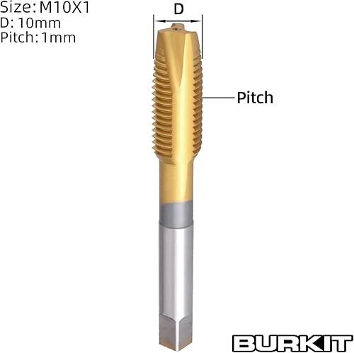 Burkit M10 X 1 Spiralspitze Gewindebohrer HSS Titanbeschichtung Spiralspitze Gewindebohrer M10x1,0