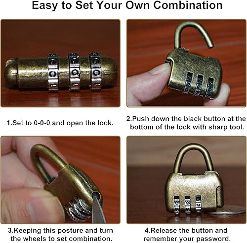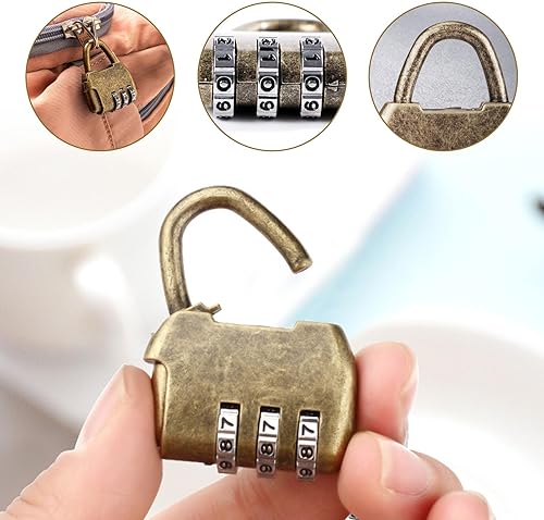 Csirnto 4 Stück Zahlenschloss Außenbereich Zahlenschloss Vorhängeschloss Retro Mini Antik Stil Zahlenschloss Vorhängeschloss aus Metall Stelliges Kombinationsschloss Vintage Vorhängeschloss