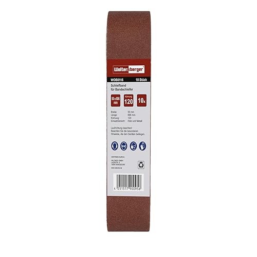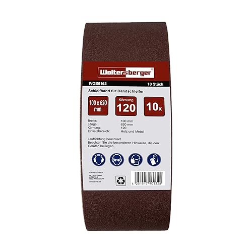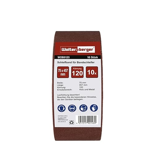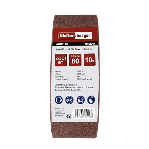 Woltersberger® Schleifbänder 15 Stück | Größe 75x533mm | Set mit je 3 Bänder in Körnung K40, K60, K80, K120, K180 | Gewebe-Schleifband Bandschleifpapier Bandschleifer
