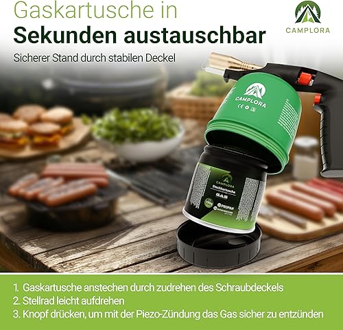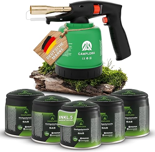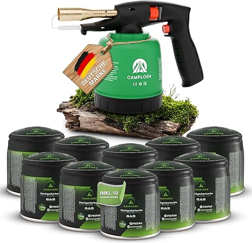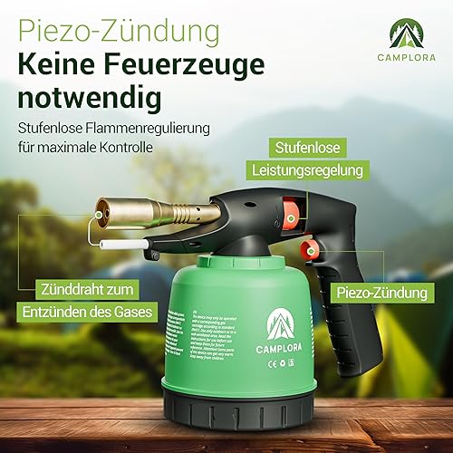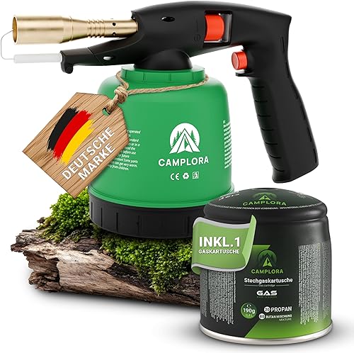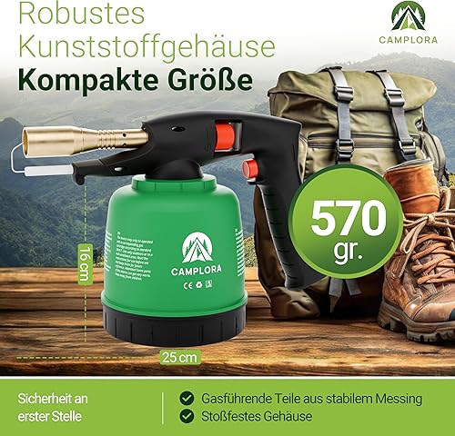 CAMPLORA Lötlampe incl. 5 Stechkartuschen Bunsenbrenner Gasbrenner Lötbrenner Piezo-Zündung löten Gas Lötmeister