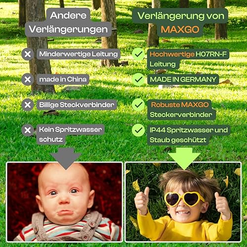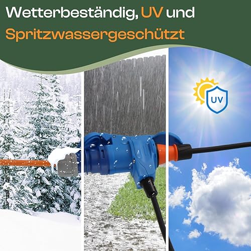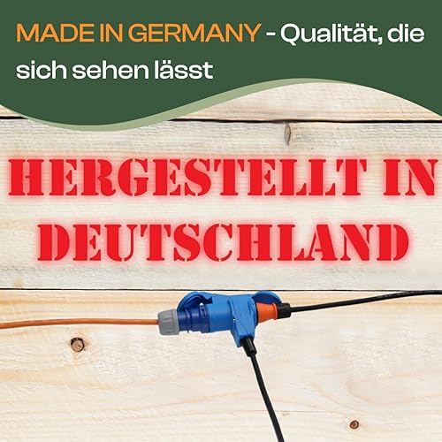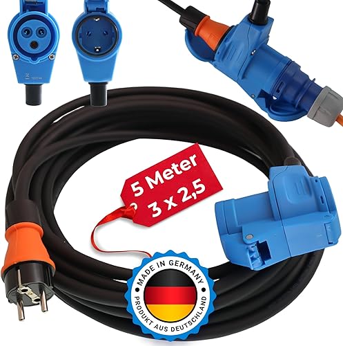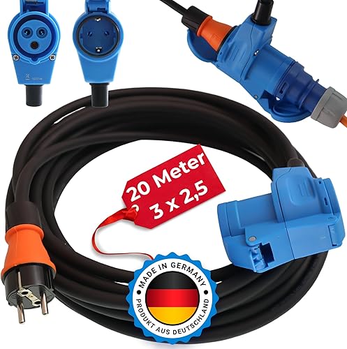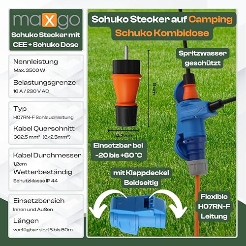 Adapterkabel Schutzkontakt Gummistecker IP44 auf CEE-Winkelkupplung mit integrierter Schutzkontaktsteckdose 16A H07RN-F 3G 2,5mm² (15m)