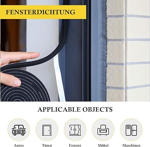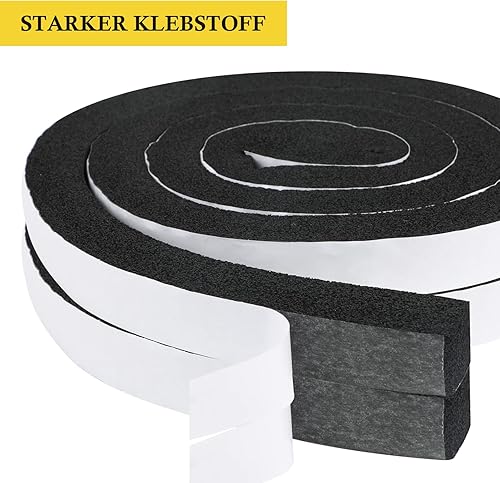 fowong Schaumstoff Selbstklebend Klebeband 12mm(B) x6mm(D) Türdichtung Dichtband Klimaanlage Kollision Siegel Schalldämmung Kompriband Gesamtlänge 8m (2 Rollen je 4m lang) Schwarz