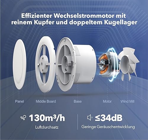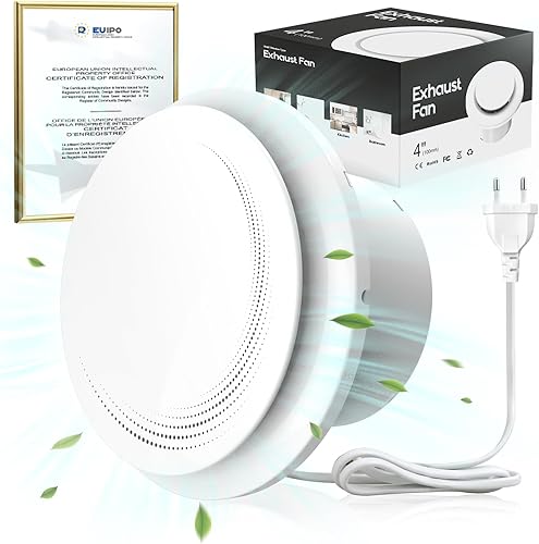 SLUELI Badlüfter 100mm, Verbesserte leistungsstarke Abluftventilator, ≤34 dB Geringes Rauschen IPX4 Wasserdichter WC Lüfter Badezimmer Küchen Garagen Einfache Installation an Fenstern Decken Wänden