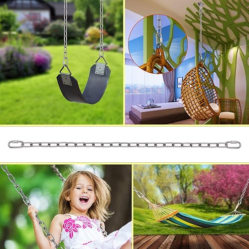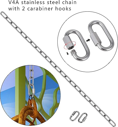 Rundstahlkette, KWOKWEI Ø5 mm Edelstahl-Kette V4A mit 2 Karabiner Haken, 70cm Schweisskette/Edelstahl Gliederkette/Verlaengerungs-Kette Bruchlast max 400 kg für Swing Haengesessel Boxsack