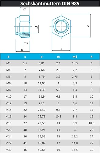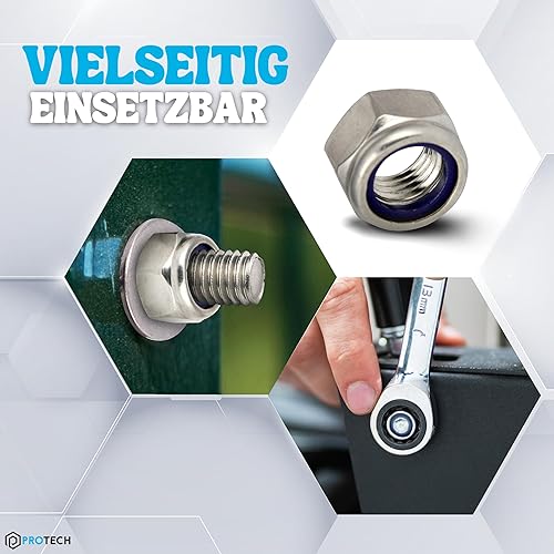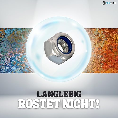 PROTECH 10 Stück Sicherungsmuttern M14 Edelstahl A2 Sechskantmuttern DIN 985 rostfreier V2A Mutter selbstsichernd