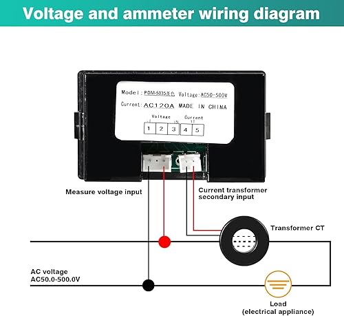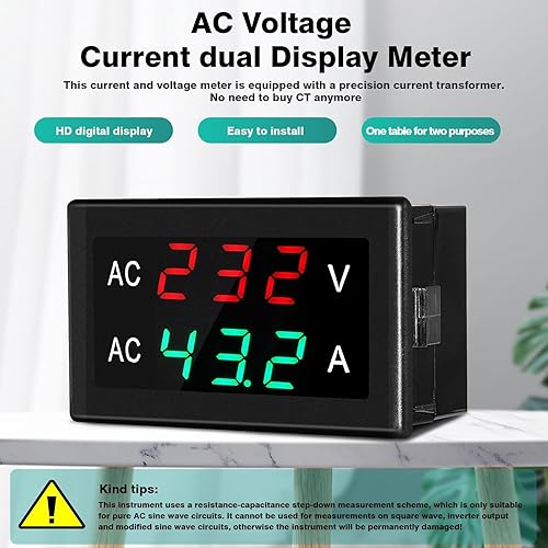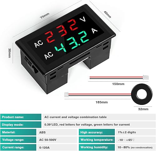 DEWIN Digitales Voltmeter Amperemeter, AC Voltmeter Amperemeter 0-120A LED Digitalanzeige Spannungs Strom Messgerät Panel mit Transformator AC50-500V