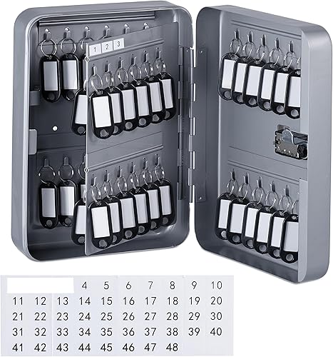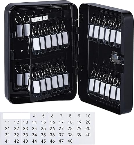 Relaxdays Schlüsselkasten, Zahlenschloss, 48 Haken, mit Schlüsselanhängern, HBT: 25 x 18 x 7,5 cm, Schlüsselbox, grau
