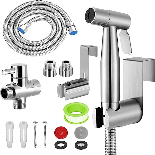 WEIDMAX Bidet-Handbrause, Hand Gehalten Bidet Sprayer Edelstahl Sprayer mit 49-Zoll-Schlauch und Halterung Halter, Includes T-adapter (G1/2''-3/8'')