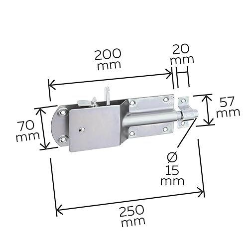 Alberts 124182 Sicherheits-Stallriegel | mit breitem flachen Griff | galvanisch verzinkt, dickschichtpassiviert | Platte 200 x 70 mm | Bolzen-Ø 15 mm | Schlaufenbreite 20 mm