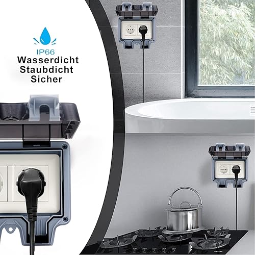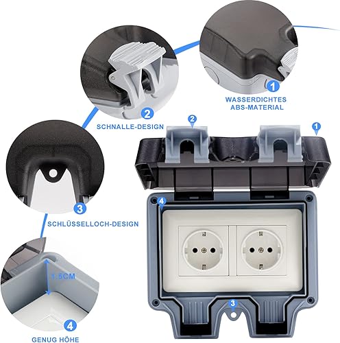 Aussensteckdose Wasserdicht - Outdoor Steckdose Ip66 Gartensteckdose, 16A Doppelsteckdose Aufputz, Steckdose Aussenbereich mit Schraubendreher, Steckdose Aufputz für Feuchtraum im Freien