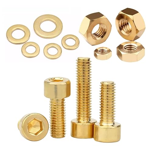 Foyoram M3x30mm Zylinderschrauben mit Innensechskant und Muttern Flache Scheibe Messing 30 Stück (M3 x 30 mm)