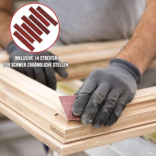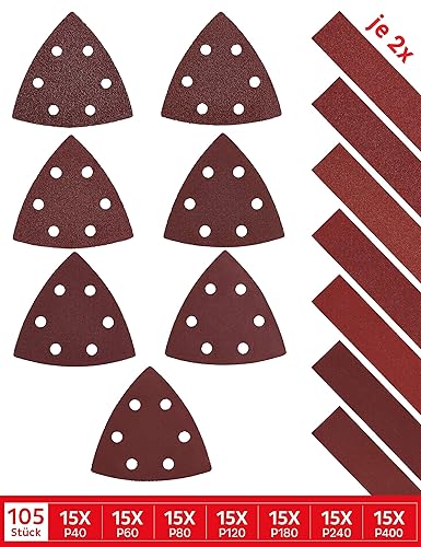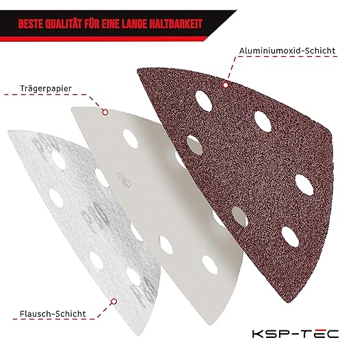 KSP-Tec│105 Stück Delta-Schleifdreiecke + 14 Schleifstreifen │93 x 93 x 93 mm │Deltaschleifer Schleifpapier Dreieckschleifer│Klett Schleifpads Multischleifer (93 x 93 x 93mm)